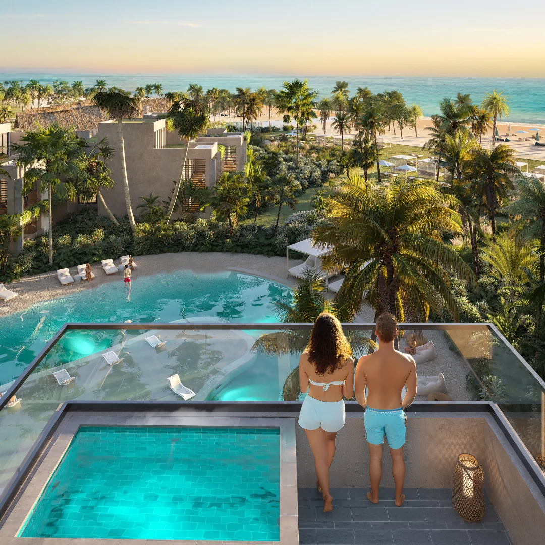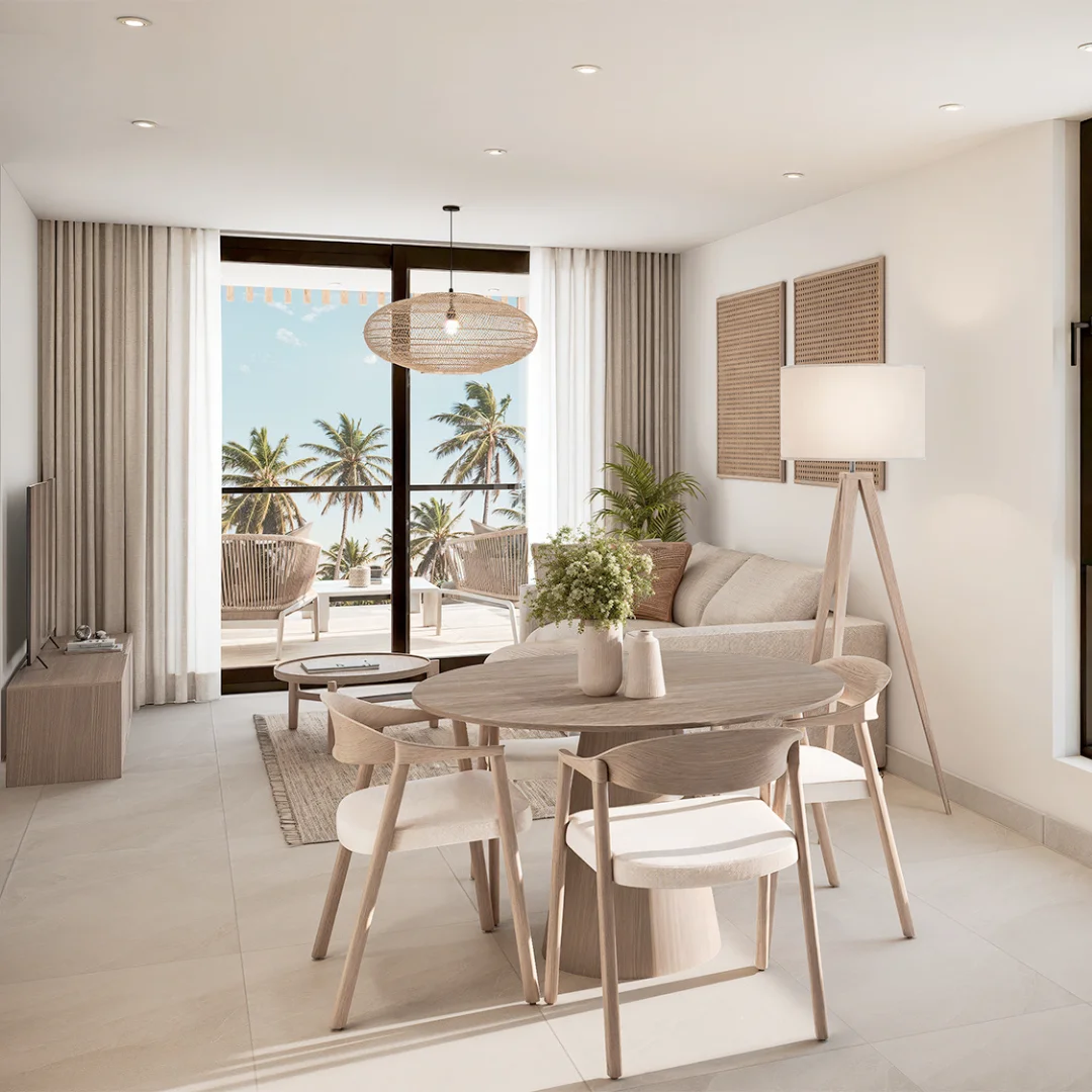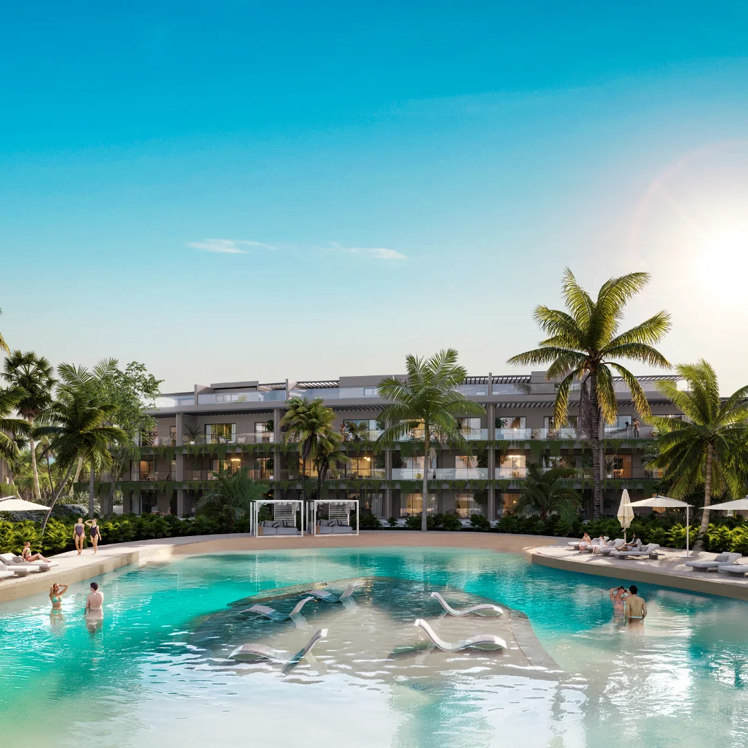 No se necesita convenio: The Reef cuenta con su propio beach club exclusivo, de uso reservado para propietarios y huéspedes, directamente frente al mar.
